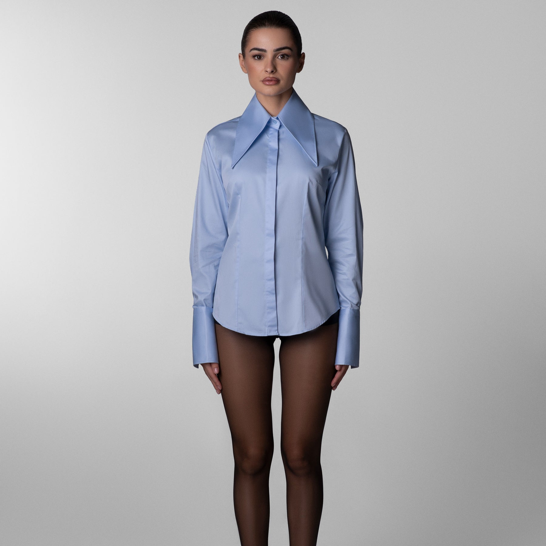 A timeless essential crafted from smooth satin, the Classic Shirt features an oversized pointed collar, concealed button placket, and elongated cuffs. Its tailored silhouette and curved hem make it versatile for both day and evening wear.