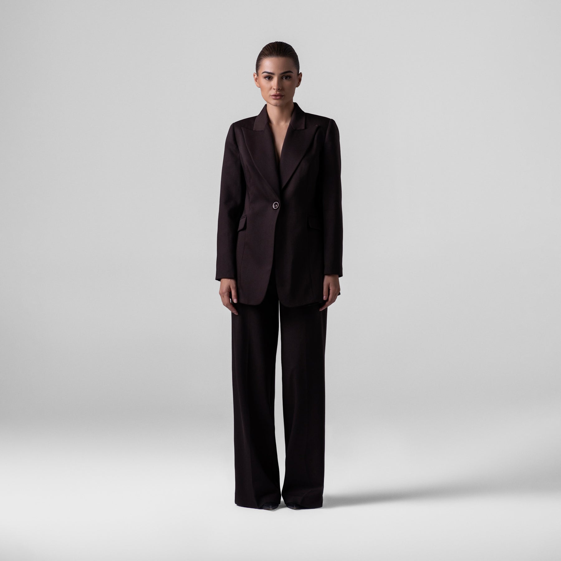 Composition: 96% Wool, 4% Lycra – Blazer Composition: 96% Wool, 4% Lycra – Pants 1-button blazer Long tailored pants Matching set