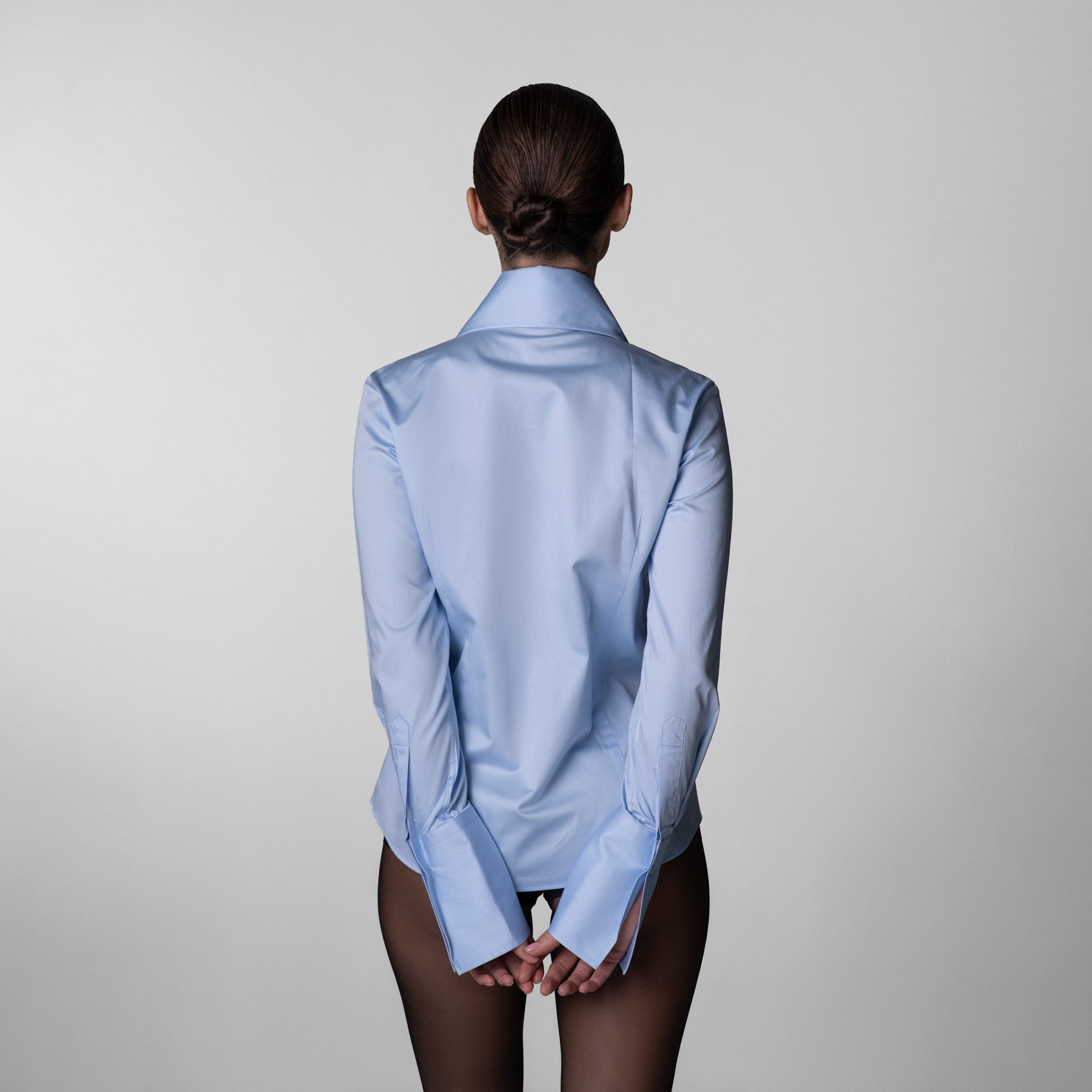 A timeless essential crafted from smooth satin, the Classic Shirt features an oversized pointed collar, concealed button placket, and elongated cuffs. Its tailored silhouette and curved hem make it versatile for both day and evening wear.