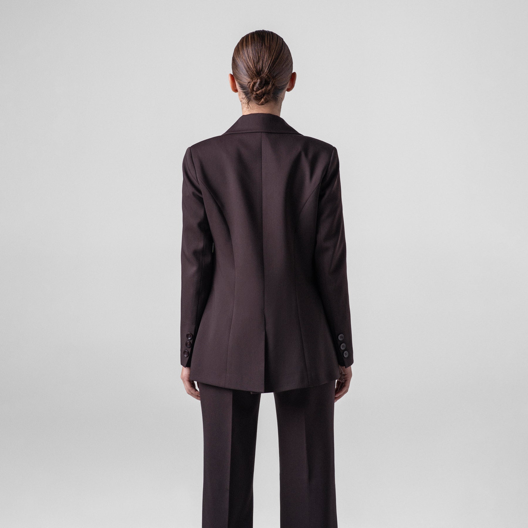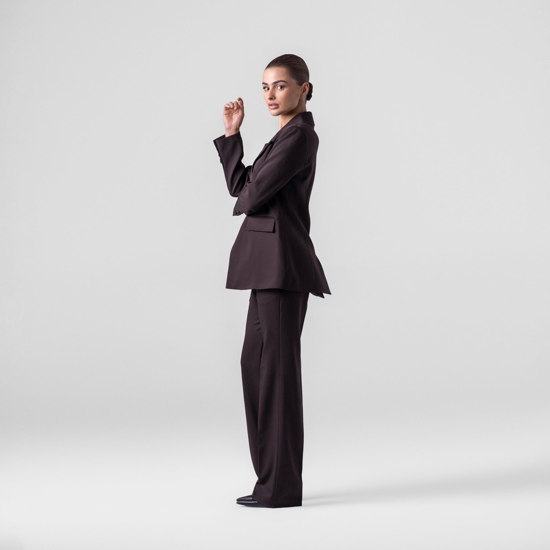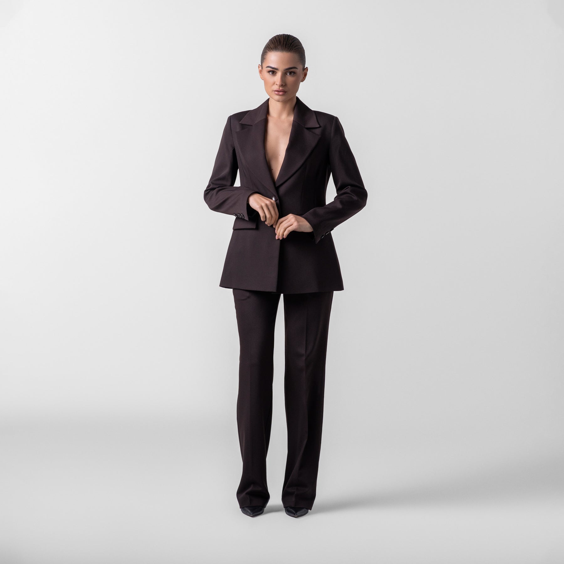 A refined matching set featuring a 2-button blazer and long tailored pants. Designed in premium wool with a touch of Lycra, it offers structure, comfort, and timeless sophistication for every occasion.