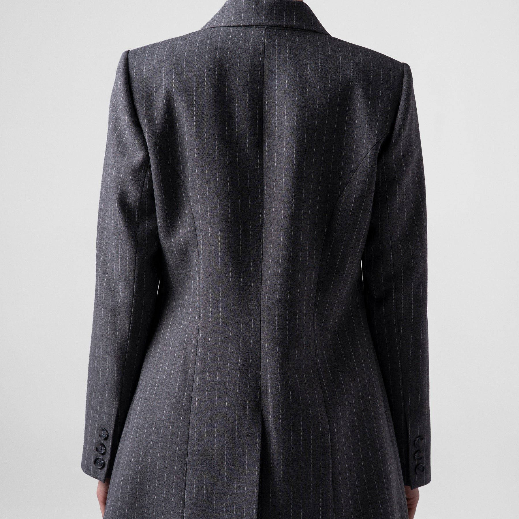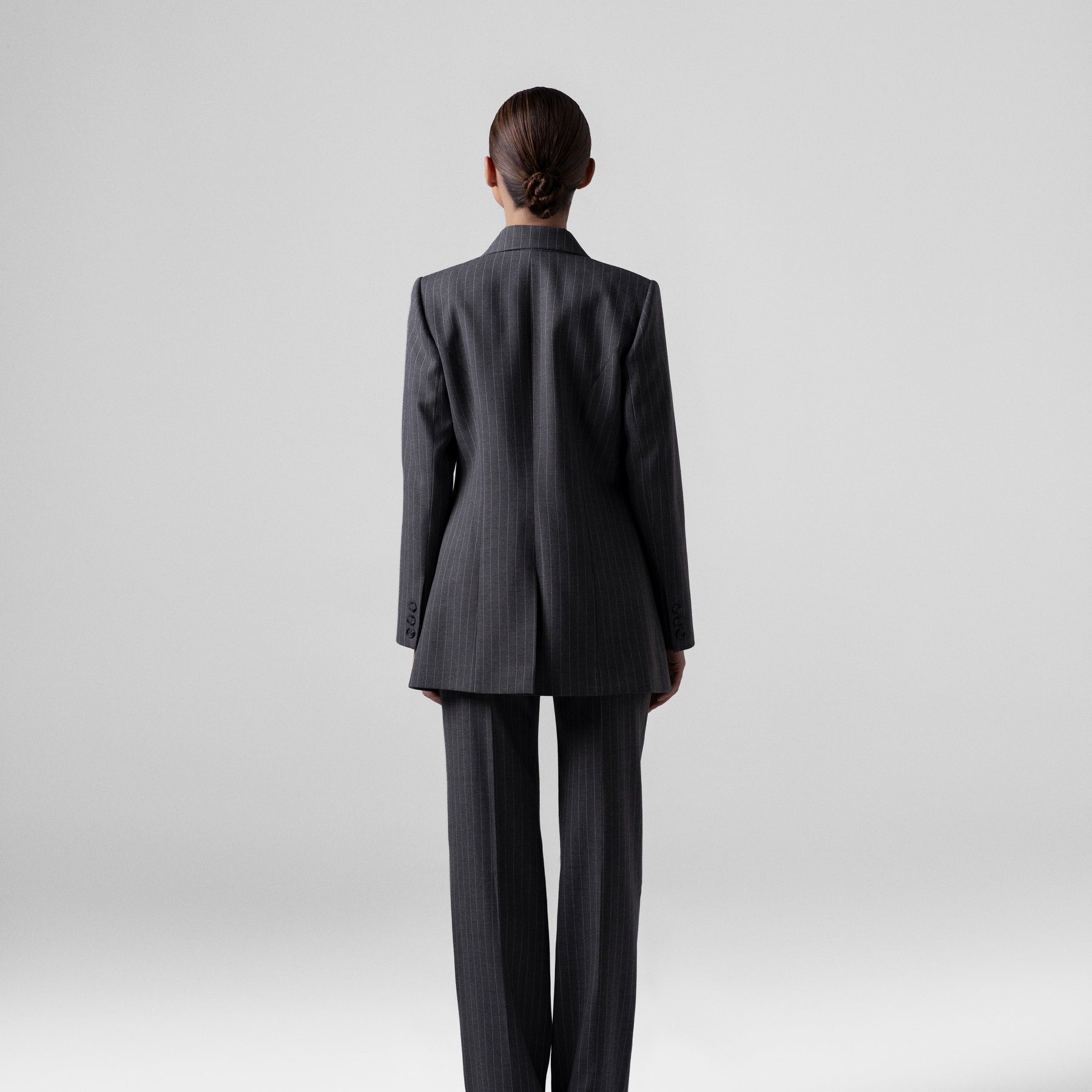 The Riviera Suit is a refined matching set, tailored in a blue and white stripe for modern sophistication. Featuring a 1-button blazer and long straight-leg pants, it is cut from fine Italian wool with a touch of Lycra, ensuring both structure and comfort. A timeless essential, elevated with a fresh Riviera-inspired design.
